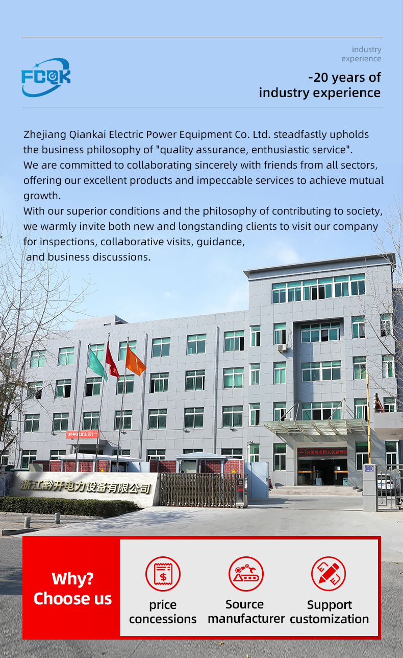 ZheJiang QianKai Electric Power Equipment Co., Ltd. specializes in the research and development, manufacturing and sales of High-voltage Complete Sets of power distribution equipments and Transformers, mainly producing box-type Substations, High-voltage Ring Main Units, High-voltage Inflatable Cabinets, Vacuum Circuit Breakers, Cable Branch Boxes, Low-voltage Switchgear, etc., which have obvious advantages and have been rated as the leading domestic ones by ZheJiang Provincial Department of Science and Technology;The products have been sold to several countries overseas, including Egypt, Russia, Nigeria, Algeria, Ethiopia,Philippines, and other countries.